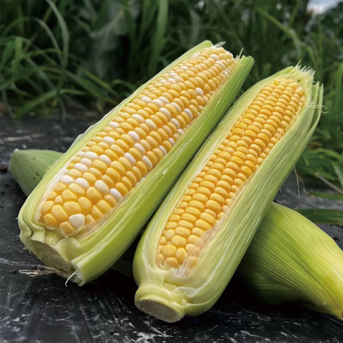 バイカラー: 黄色と白の粒が美しい、見た目にも鮮やかなスイートコーンです。